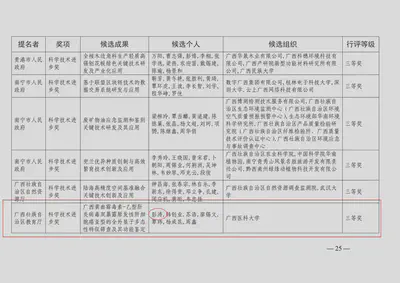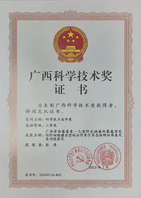 2025年7月04日,广西科学技术奖励委员会办公室公布2024年度广西科学技术奖奖励名录,广西医科大学第一附属医院副院长、实验室副主任彭涛教授课题组的《广西黄曲霉毒素-乙型肝炎病毒双暴露原发性肝细胞癌亚型的全外显子多态性特征筛查及其功能鉴定》项目获得广西科学技术进步奖三等奖。