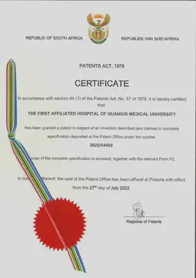 实验室团队胃肠外科方向陈俊强教授等获授权国际发明专利《Organometallic drug-loaded nano-particle for targeted treatment of tumors and a preparation method theory》,该发明提供了一种用于靶向治疗肿瘤的有机金属纳米载药颗粒及其制备方法,属于载药颗粒制备技术领域。该发明的有机金属纳米载药颗粒,由金属锌纳米骨架、缺氧激活前药、声敏剂和同源肿瘤细胞膜构成,其中缺氧激活前药是替拉扎明,声敏剂是二氢卟吩e6。该发明利用包裹同源肿瘤细胞膜的特点,靶向运送纳米载药系统到达肿瘤部位。有机金属纳米骨架在肿瘤部位纳米骨架酸响应性裂解,释放出其装载的药物。超声二氢卟吩e6释放活性氧后,杀死肿瘤细胞,同时,加剧了肿瘤环境的缺氧,进一步诱导替拉扎明杀死肿瘤细胞,从而实现对肿瘤的治疗作用。因此,该发明的纳米药物制备方法对胃癌治疗方法的改进具有重要意义。