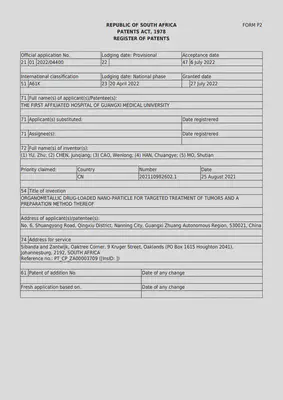 国际发明专利:Organometallic drug-loaded nano-particle for targeted treatment of tumors and a preparation method theory
