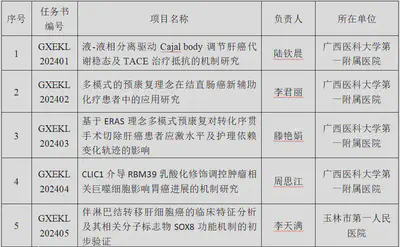2024年立项的广西消化道肿瘤加速康复外科基础研究重点实验室开放课题。